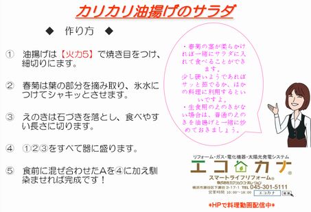 さて、今日は「カリカリ油揚げのサラダ」の作り方をご紹介します。