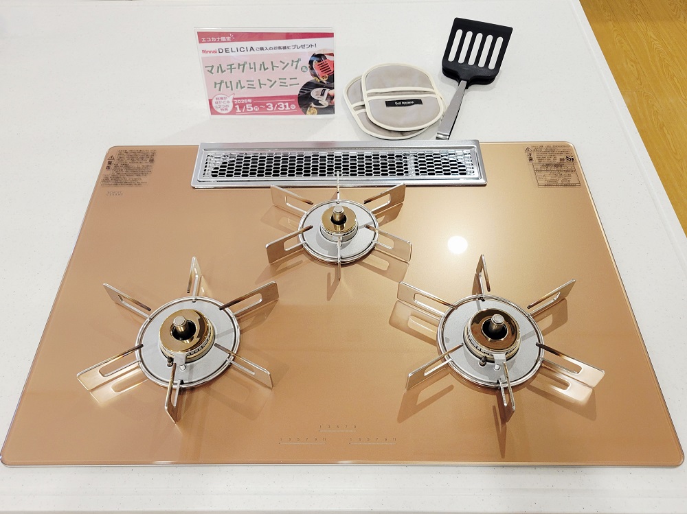 対象商品は、リンナイの人気ビルトインコンロ「デリシア」シリーズ全商品です。