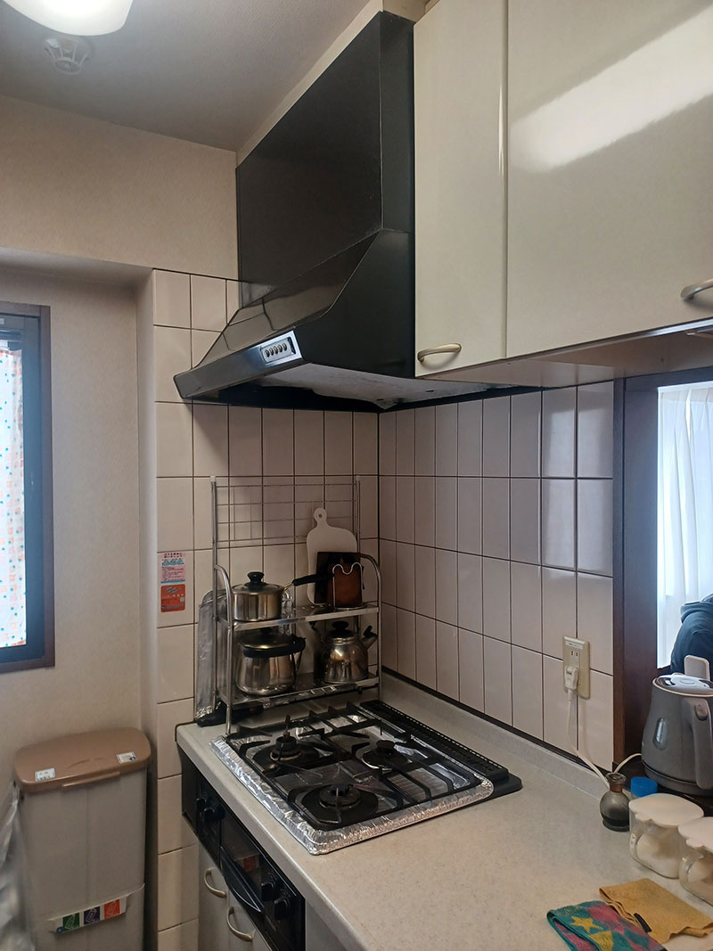 25年と長期間使用していたレンジフードの交換をご依頼いただきました。エコカナで実物を見ていただき、静音性の高さからリンナイのXGRシリーズをお選びいただきました。ビルトインガスコンロと併せて交換したことで、キッチンの印象が明るくなりました。