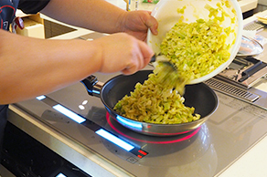 食材の解凍から焼き上げまで行える「凍ったままIHグリル」を実演していただきました