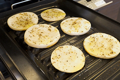 ③グリル設定【ココットプレート】【タイマー調理】【15分】で加熱します。焼き上がったら塩こしょうをかけて完成です。