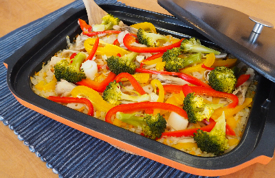 ノーリツプログレのキャセロールを使った「野菜畑のパエリア」