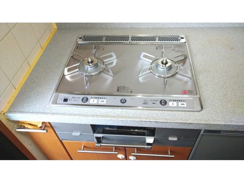 ガスコンロをリンナイのリッセに交換 ガスオーブンを撤去し収納に変更 明るく使いやすいキッチンに一新