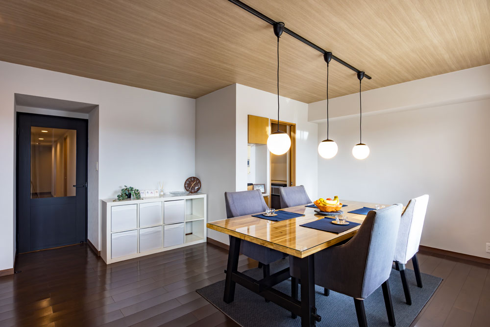 さらに、プランナーの提案で天井には木目柄を取り入れ、空間に奥行きと落ち着きをプラス。「家にいる時間がこんなに心地よくなるなんて」と奥様。休日に遠出をしなくても、自然と家で過ごす時間を楽しみたくなる住まいになりました。