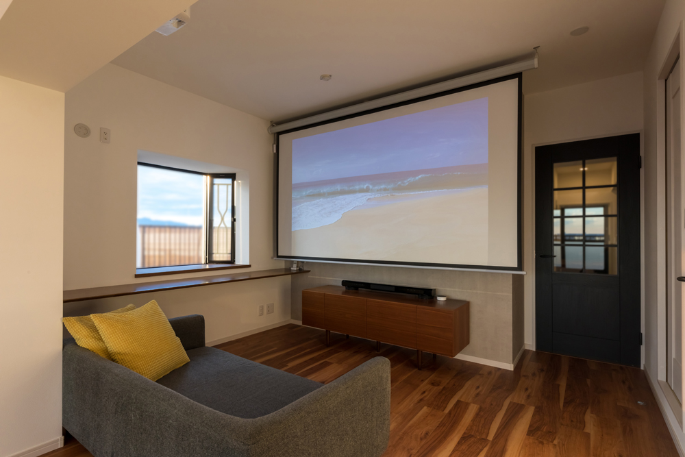 また、壁掛けTVとオープン収納の背面にはグレージュのアクセントクロスを貼り、余白のある居心地のよいリビング空間に仕上がりました。